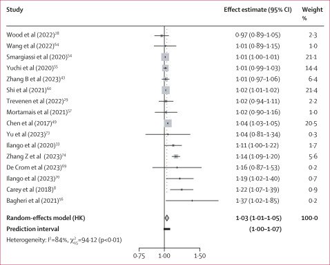 Random-effects meta-analysis of adjusted effect estimates for PM2·5